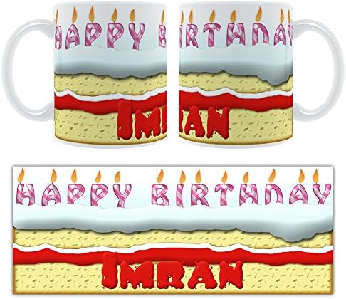 Happy Birthday Imran Birthday Cake Personalised Ceramic Mug Amazon Co Uk Kitchen Home