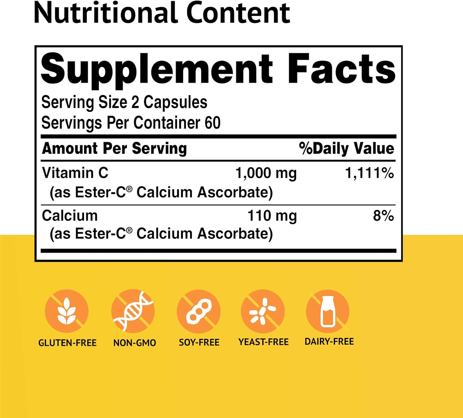 Amazon Com American Health Ester C Capsules Gentle On Stomach Non Acidic Vitamin C Non Gmo Gluten Free 500 Mg 1 Count 60 Servings Health Personal Care