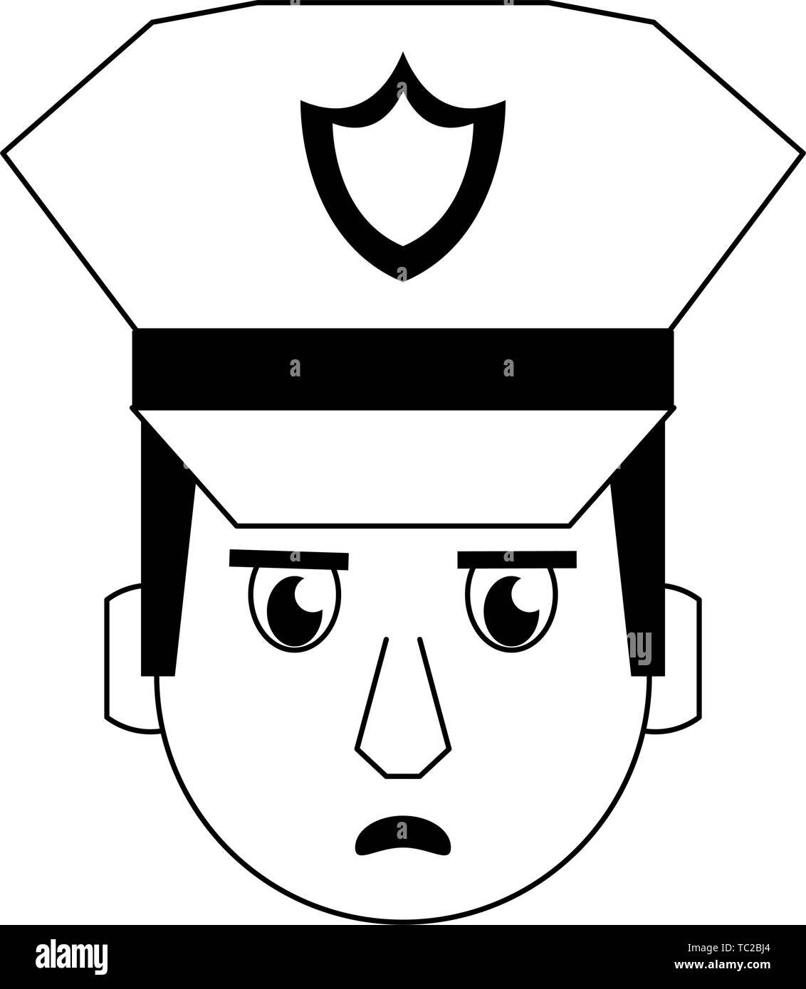 Policeman Face Avatar Cartoon Character In Black And White Stock Vector Image Art Alamy
