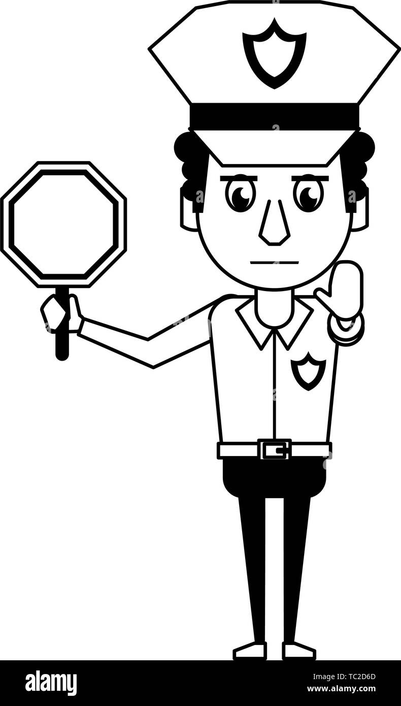 Policeman Working Avatar Cartoon Character In Black And White Stock Vector Image Art Alamy