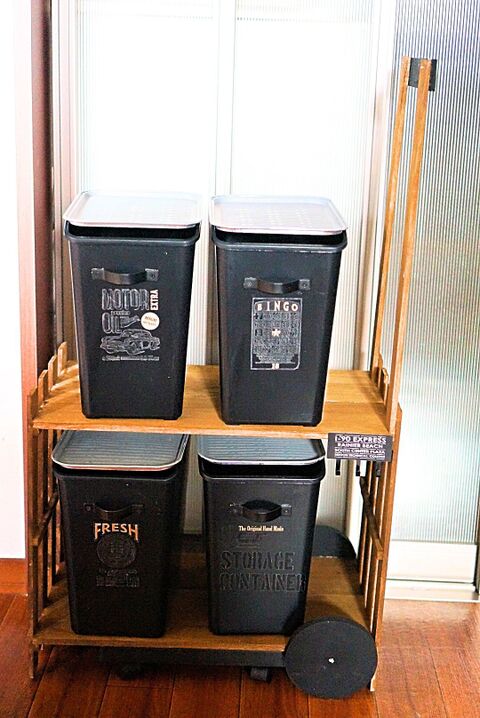 モノ好き 128 無印ダストボックスにキャスターをつけて4つ並べる Tj