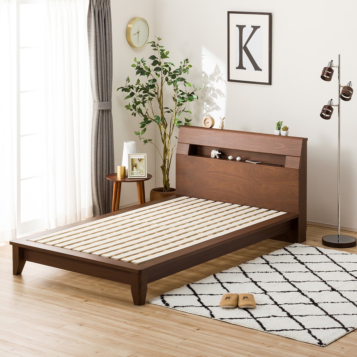 Amazon ベッド セミダブルベッド フレーム単体 宮付き ローベッド 超低め フロアベッド 木目調 すのこベッド 北欧 モダン ベッドフレーム オンライン通販