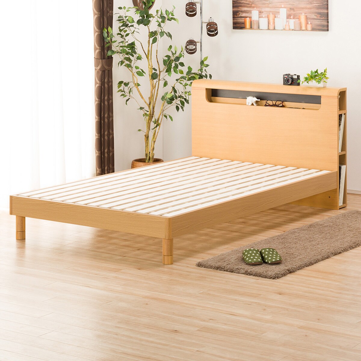 Armi 木製ベッド セミダブル フレームのみ 木製 棚付き コンセント 木製ベッド セミダブル ベッドフレーム ベット ベッド通販専門店 ネルコ Neruco 通販 Yahoo ショッピング