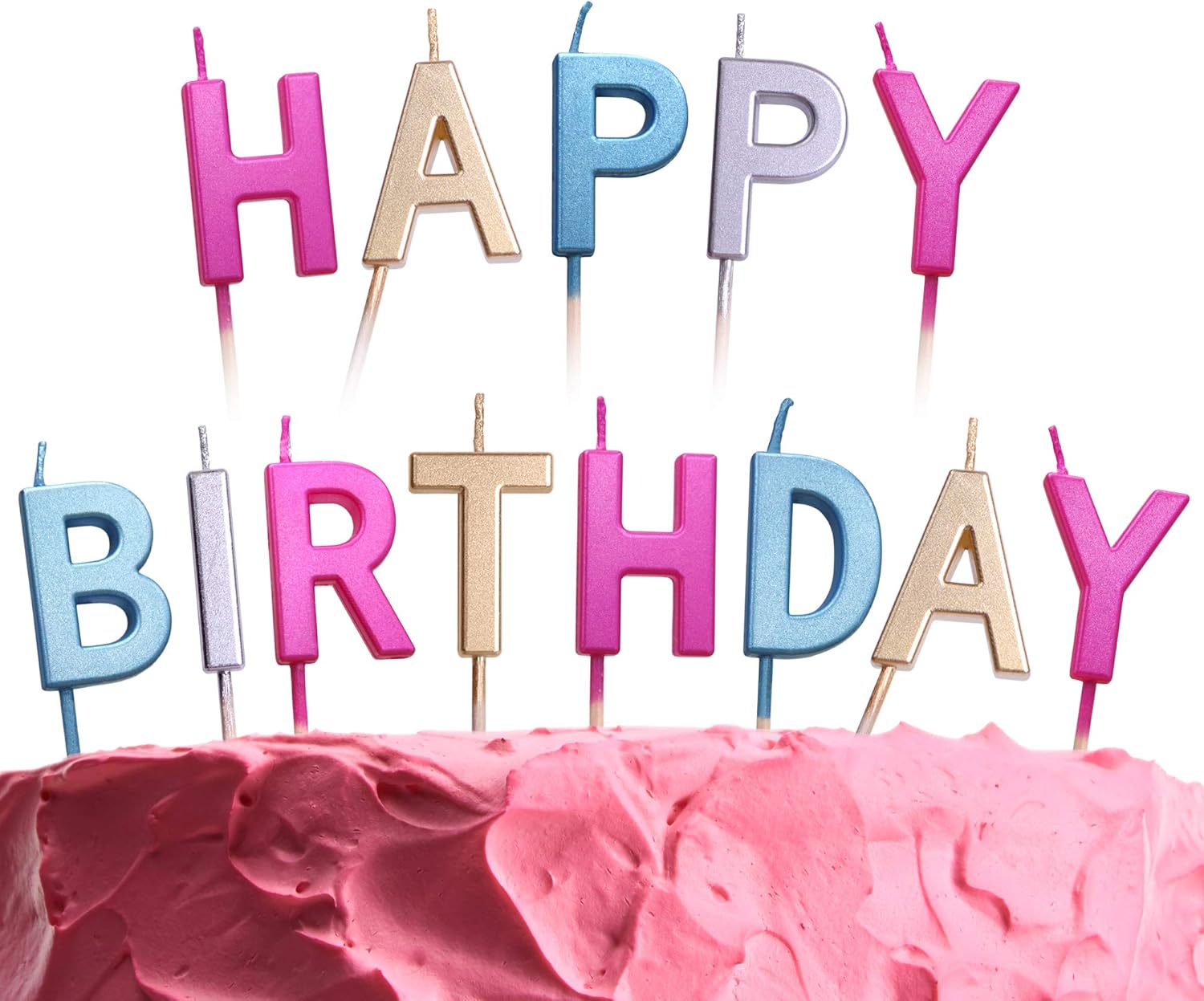 Amazon Com Get Fresh Coloured Happy Birthday Candles 13 Count Multicolour Letter Birthday Candles For Cakes Elegant Alphabet Candles For Birthday Metallic Happy Birthday Cake Candles For Adults And Kids