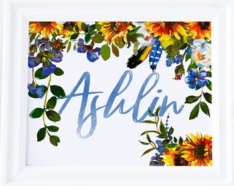 Customized Name Wall Art Flowers Nursery Print By Mini Learners