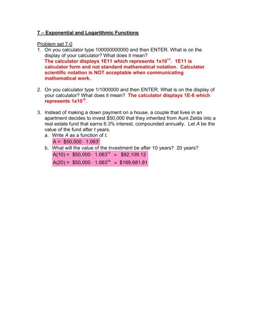 7 A Exponential And Logarithmic Functions Problem Set 7 0 1 On