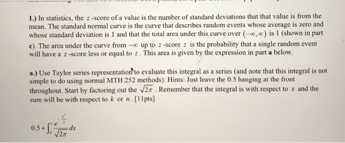 1 In Statistics The Z Score Of A Value Is The Chegg Com