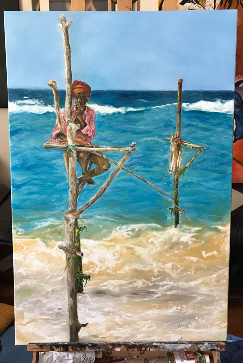 Dilara Sri Lankan Stilt Fisherman Painting Oil Canvas Art Artist