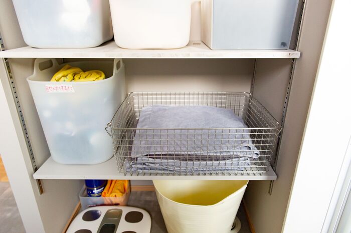 脱衣所 ニトリのカゴに ザックリ収納 W Bマニアハウス
