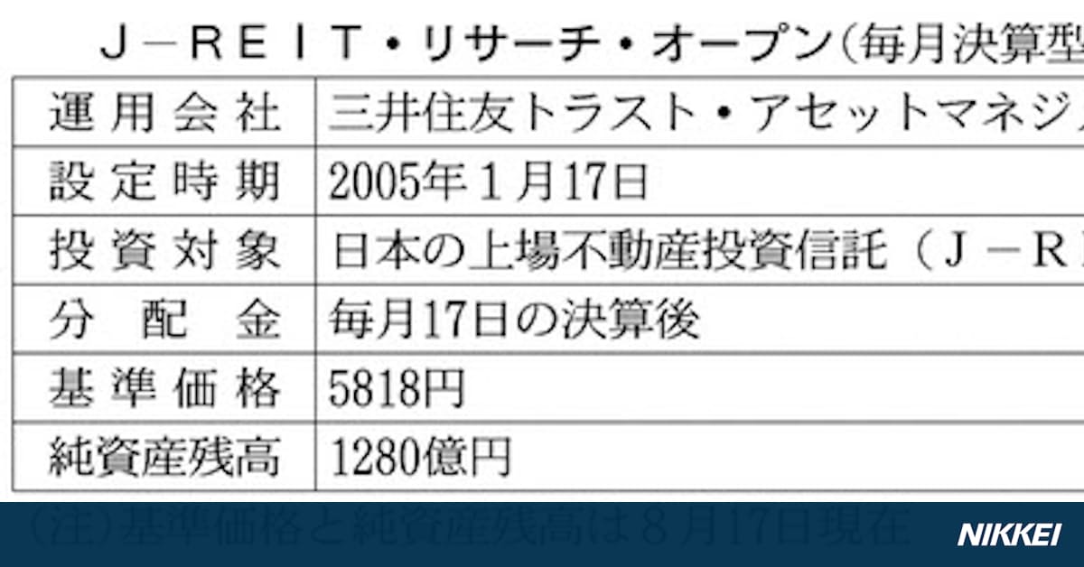 J Reit リサーチ オープン 毎月決算 投資信託 日経会社情報digital 日経電子版