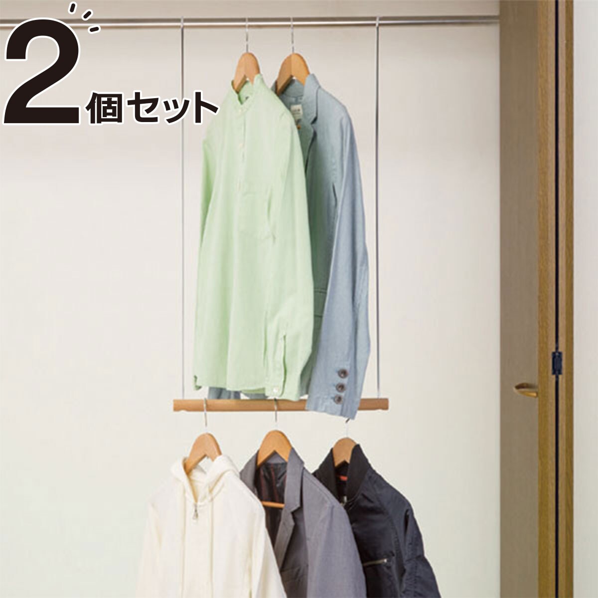 楽天市場 ハンガー 衣類収納アップハンガー 2本組 収納 衣類ハンガー ハンガーラック コート収納 段違い おしゃれ コート掛け パイプハンガー クローゼット 整理 省スペース 洋服 衣替え 礼服 制服 収納用品 クローゼット吊り下げ収納 リビングート 楽天市場店