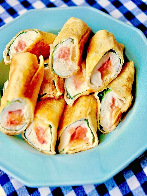 ヘルシー 冷めても美味しい 油揚げで低カロリー ささみ明太子チーズ春巻き 暮らしニスタ