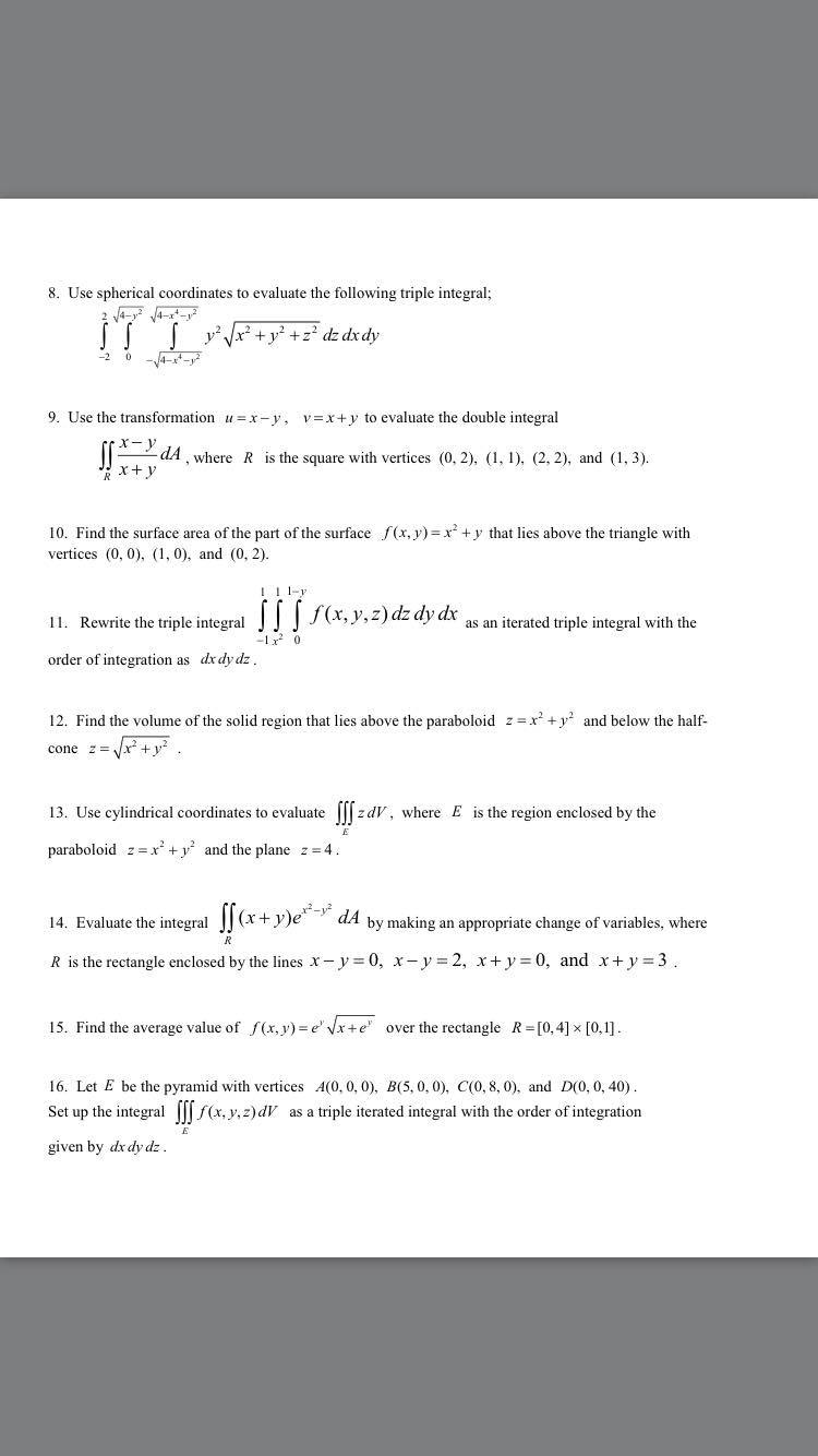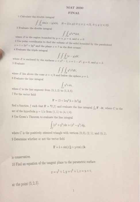 Iterated Double Integral Multivariable Calculus Solved Past Paper Docsity