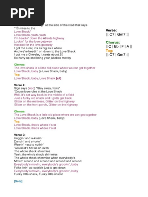 B52s Love Shack Lyric Chart Song Forms Song Structure
