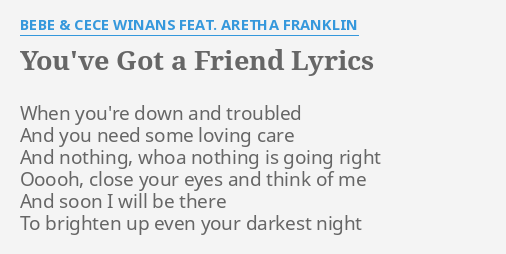 You Ve Got A Friend Lyrics By Bebe Cece Winans Feat Aretha Franklin When You Re Down And