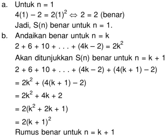 2 4 6 8 2n N N 1 Untuk Setiap Bilangan Asli N Induksi Matematis Brainly Co Id