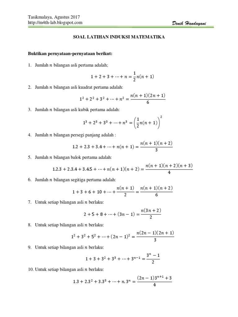 Induksi Matematika Www M4th Lab Net Pdf Induksi Matematika Soal Latihan Induksi Matematika Buktikan Pernyataan Pernyataan Berikut Dengan Induksi Course Hero