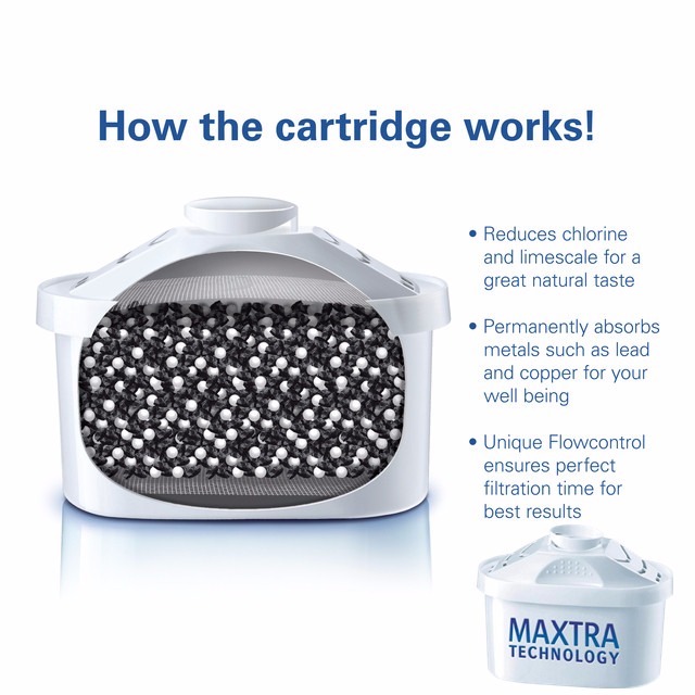 Brita Maxtra Plus Filter Cartridge quantity. 25% finer mesh and micro carbon pearls reduce chlorine and impurities for improved taste and appearance of food and drinks;. The only annoying part is that these filters just like the original ones will not last a month so we rang Brita to see why and they say that they have altered the filter so that it monitors how much water goes through the filter and because we use a lot we will only get two weeks and not four ,so when the gauge tells us that it needs another we have to give it a extra two weeks so we are in theory getting four weeks.