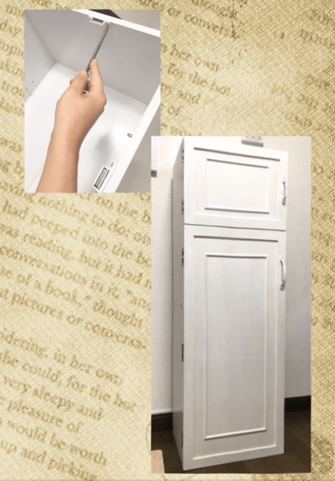 カラーボックスに飾り扉を付けて 大容量のアンティーク キャビネット風に 暮らしニスタ