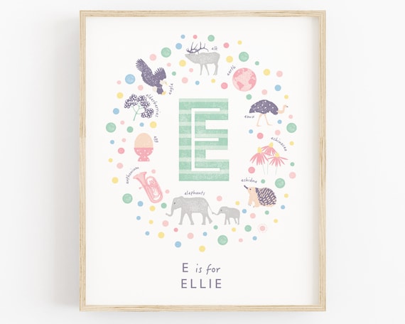 Personalised Baby Girl Name Art Letter E Nursery Wall Art Etsy
