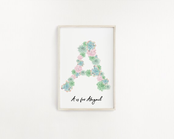 Watercolor Letter Custom Name Art Alphabet Letter Print Etsy