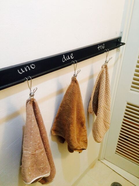 端材とアイアンバーでdiy 洗面室の黒板タオル掛け 暮らしニスタ