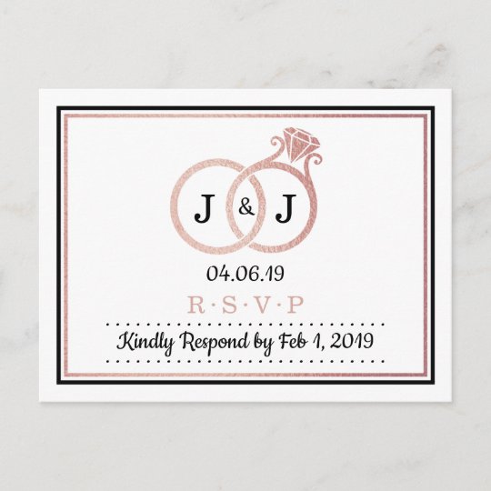 Chic Faux Rose Gold Foil Monogram Wedding Rings Invitation Postcard Zazzle Com