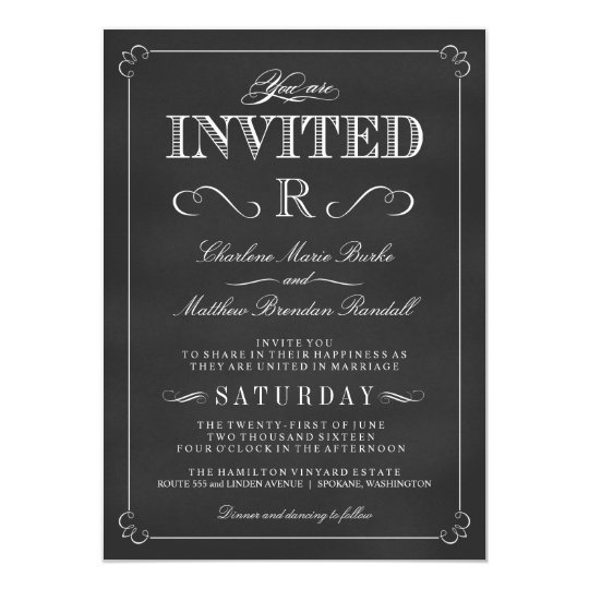 Monogram Rustic Chalkboard Wedding Invitations Zazzle Com