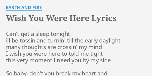 Wish You Were Here Lyrics By Earth And Fire Can T Get A Sleep