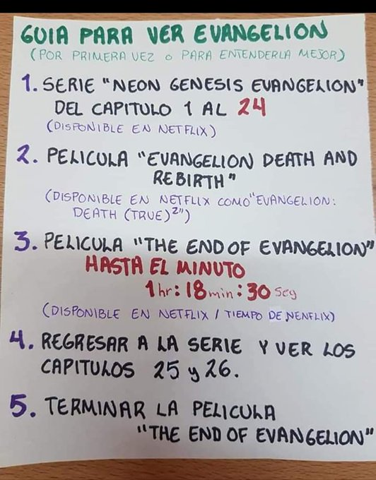 Norami Orden Para Ver Evangelion Neon Genesis Evangelion Hasta El Episodio 24 The End Of Evangelion La Pelicula Desde Este Punto Es Opcional Esto Los Rebuilds