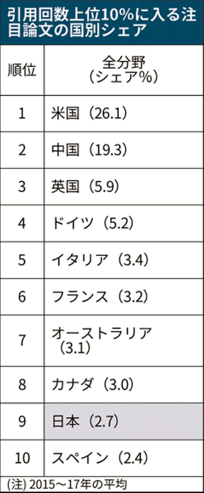 注目論文シェア 日本9位 お家芸 の化学 物理低迷 日本経済新聞